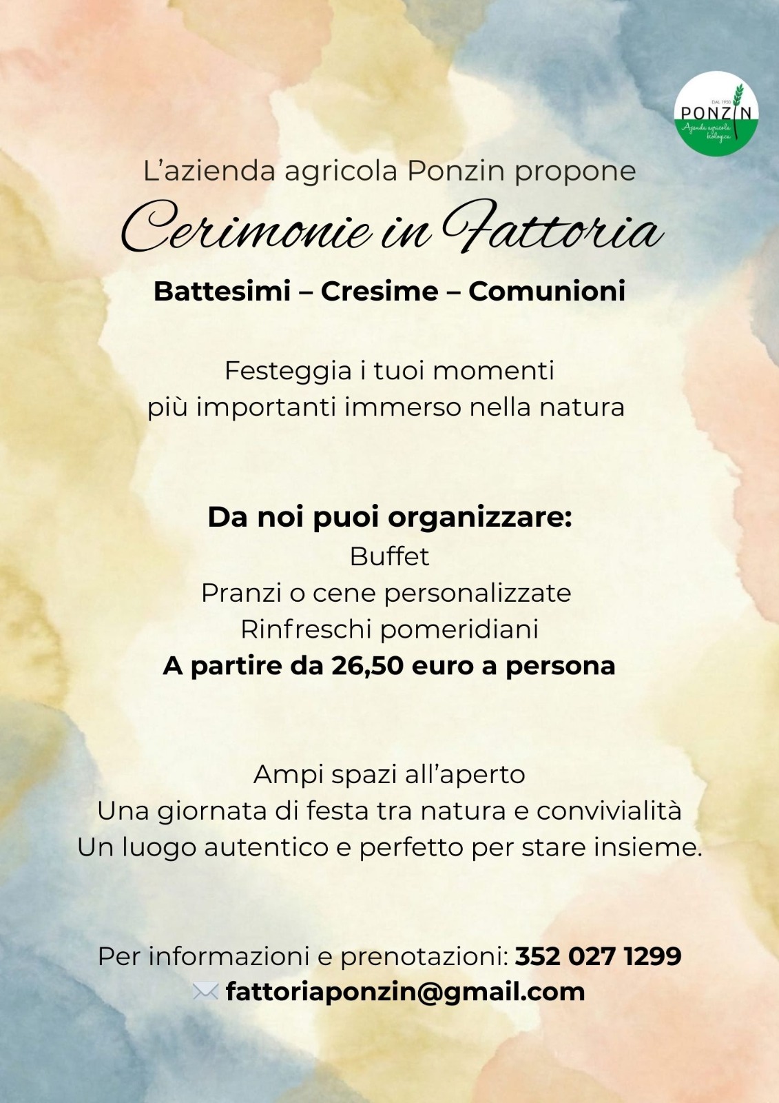Nell’agriturismo “Fattoria di Nonna Olga” è possibile festeggiare battesimi, comunioni, cresime, feste di fine anno scolastico, cene di lavoro ed eventi.